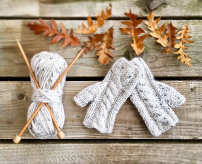 Knitted flat on straight needles in chunky weight yarn. A quick project that can be completed over a weekend. Make longer for arm warmers or keep short for hand warmers. Pattern includes instructions for knitting gloves all in one piece with a thumb and separate pattern instructions for knitting with a sewn inset thumb.