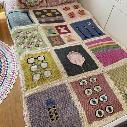 My books blanket is composed of twelve large squares that are each inspired by a different book. I decided to name the blanket, the Well Loved Books Blanket because they each represent a well-known book. However, the idea is that you can use these squares to make many different projects: pillows, wall hangings, bags, baby/lap blankets, and much more! The three main crochet techniques used in this blanket are: tapestry crochet, joining granny squares, and crochet applique. If you are new to any of these, do not worry- there is a photo tutorial and explanation at the beginning of the pattern to demonstrate each of them! I hope you enjoy the pattern, and I can't wait to see all the different projects you make with these squares!