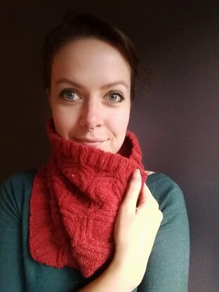 Though I love wrapping myself with long thick scarves, having to daily walk two big dogs (so my hands are full), makes wrapped scarves that slip off very annoying. So a cowl is perfect for me. It keeps me warm, and I don't have to bother with it. The cowl is basically a one size fits all-type. However, I have included how you can make it bigger or narrower if you want. The pattern, both in English and in Dutch, are completely written out, row by row. But there’s also an easy chart to follow, if you prefer charts. For your convenience, I have made this pattern with a text and chart in black and white, like you would normally come across. But I’ve also added a colourcoded version, for those who would like a little help differentiating the different cables.