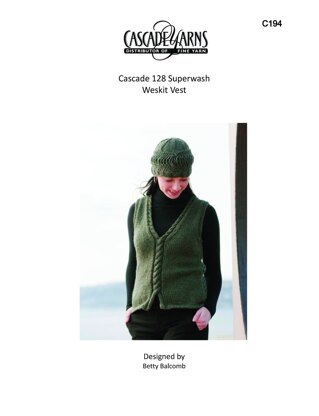 Weskit Vest in Cascade Yarns Cascade 128 Superwash - C194 - Downloadable PDF is a free Intermediate Knitting pattern by Betty Balcomb, available as a Downloadable PDF and includes instructions in English. Super fun to make, this pattern could be your next masterpiece!
