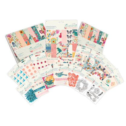 WOW! A bumper pack filled with swooping birds, stunning butterflies and beautiful bouquets. The bundle includes over 180 items and will delight crafters looking forward to sunny days ahead. \nIncludes:\nDie-cut Toppers (10pcs)\nDie-cut Sentiments (2 sheets)\nDie-cut Notelets (6pcs)\n6 x 6" Paper Pad (36pk)\nA4 Ultimate Die-cut & Paper Pad\nMini Decoupage (2 sheets) - Roses\nMini Decoupage (2 sheets) - Bluebirds\nDie-cut Tags & Twine (6pcs)\nGlitter Chipboard Alphas (60pcs)\nAdhesive Gems (12pcs)\nResin Birds (12pcs)\nResin Roses (12pcs)\nPaper Flowers (12 pcs)\nPrinted Ribbon (5 x 1M)\n3D Stickers (9pcs)\n4 x 4" Clear Stamp - Birds\n4 x 4" Clear Stamp - Frame