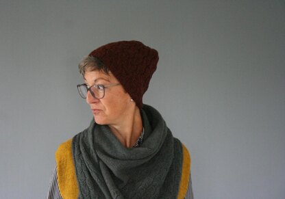 Yarn: sport weigth, the brown sample in size L is worked with Mominoki German Merino light, col. Marron, the orange sample is size M and worked with 2 strands of Walk Collection Cottage Merino (yarn held double), the gray hat in M is worked with 2 strands of Myak Baby Yak Lace and smaller needles (knit L to get M)