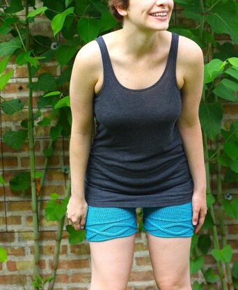 After seeing Wet Hot American Summer, I wanted to bring sexy to my summer wardrobe! So I designed those mid-waist shorts to wear in the city or at the beach all summer with big sandals and a cute crop top. What I enjoyed most when knitting those shorts were all the different techniques I got to use. I’ve been obsessed with grafting in pattern lately and I love the looks of those horizontal cabled legs! The cable pattern is worked flat and then the last stitches are grafted with the provisional cast on. Stitches are then picked up on the side of the cable panel and the rest of the shorts is worked in stockinette stitch in the round, with short rows to shape the back. The waistband has an elastic band inserted for a perfect fit. This pattern is highly customizable, you can make longer legs, add more room in the back and make a lower or higher waist as you wish!