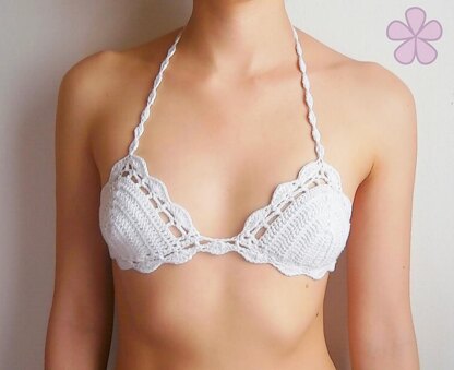 Scalloped triangle bikini top crochet pattern. Lace crochet bikini top // The WHITE DUNES bikini top crochet pattern