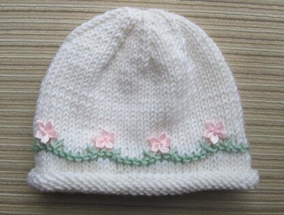 White Hat with Pink Flowers for a Girl in Sizes 6 months and 2-4 years