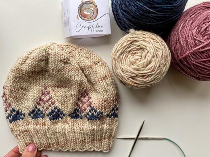 The White Oak hat was inspired by the beautiful skein of White Oak DK from Lora of Campfiber yarns. It was sitting in my stash waiting to become a beautiful hat. I just knew it had to be colorwork. I love how you can mix and match these colors to really make it your perfect hat. This is a great stash buster project as well.