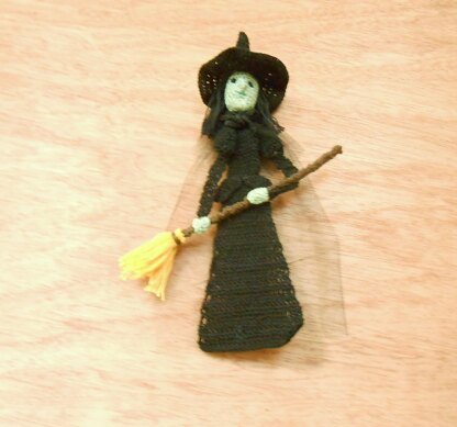 I have designed all 4 main characters in wizard of Oz books as bookmark patterns. I had a request for the wicked witch of the west and Glinda the good witch. Here is my version of the wicked witch of the west for everyone who loves these stories. Do you love Halloween and love to decorate for this event? This would make an excellent party favor. The crochet stitches include, sc, hdc, dc, tr and sl st and front loop and back loop work. The pattern includes description of abbreviations and complete instructions with picture tutorials. Skill Level: Intermediate. **Materials: **Various colors of size 10 crochet threads. I used Aunt Lydia Frosty green, black, fudge brown and goldenrod. Also need 1 skein black (or choice of hair color) embroidery floss, 1 Fuzzy stick, 9 x 10 inch (22.86 x 25.40 cm) piece of black tulle. Small amount of polyester fiberfill, Tapestry needle, Steel Crochet hook size 1 (2.25mm), Washable fabric glue.