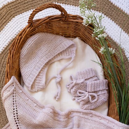 NOTE: The set “Wicker basket” consists in 3 patterns: a blanket, a baby bonnet and baby booties. All patterns are created for wool yarn and can be easily realised even by a confident beginner. To make this pattern easier to follow the sizing instructions are colour-coded.
