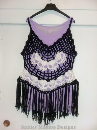 Wikked skulls Festival Top. Pattern includes sizes from Small , 34 inch chest to 3X 52 inch chest Sizes are determined by hook size S & 1X G (4.25) M & 2X I (5.50)L Xl, & 3X (6.50) Sizes Xl to 3X Pictures of almost every row. American Crochet terms