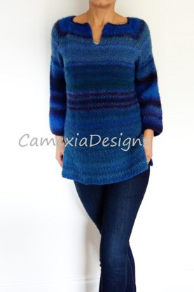 Length is easy adjustable since the sweater is worked top-down.