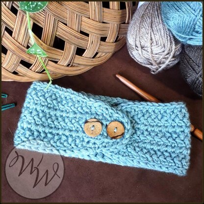 This is such a quick project! It is perfect for market prep or a last minute gift. The buttons slip through the existing stitches, making the size adjustable and there are no button holes to make. With it buttoned, as in the photo, it should fit a 21"- 23" head, tighten it and re-button it for a size smaller size (20'-22"). For a larger size(22"-24"), only use the button closest to the end. Your finished headband should measure approximately 23 1/2" long and 3 3/4" wide.
