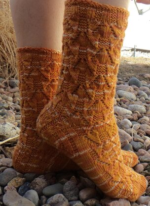 This sock was designed with my boys and nephew in mind for the February 2016 SKA Literary Challenge. The stitch pattern uses lace, but the eyelets are closed up by working them through the back loop to make the socks more "masculine" (blue/green version).