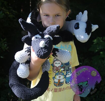 Meet Umbra the shadow dragon and Tornado the wind dragon. These dragons are combined into the second pattern in my Kids Creation: Dragon series. Imagined up by the same 10 year old who came up with Bee Lion! While this pattern is not exactly the pictures she drew, I incorporated many of her design elements and even added wings as an option. All parts are interchangeable so you can mix and match to make your own creation!