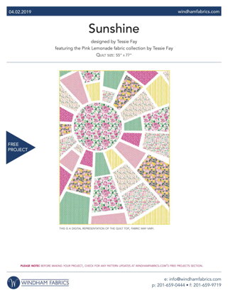 Windham Fabrics Sunshine - Downloadable PDF is a free Intermediate Quilting pattern by Tessie Fay, available as a Downloadable PDF and includes instructions in English. Super fun to make, this pattern could be your next masterpiece!