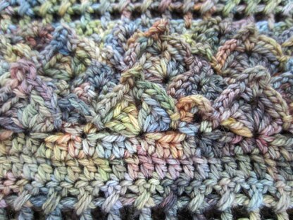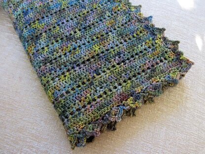 Windy City Baby is a soft blanket for baby, or it is a great throw to use in any room of your home. Crocheted in the colors of spring--greens, lilacs, purples, and blues--Windy City Baby has a four-row repeat. The edging has a leafy appearance. The finished blanket is 35 inches long and 36 and 1/2 inches wide.