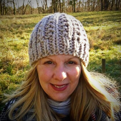Knitted in a super chunky / super bulky yarn. I used a soft and cosy yarn from Schachenmayr, a really soft and chunky yarn but you can use any super chunky yarn.