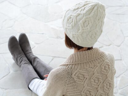 A cabled hat matching Winter Highway cardigan. It is worked in the round from the bottom up.