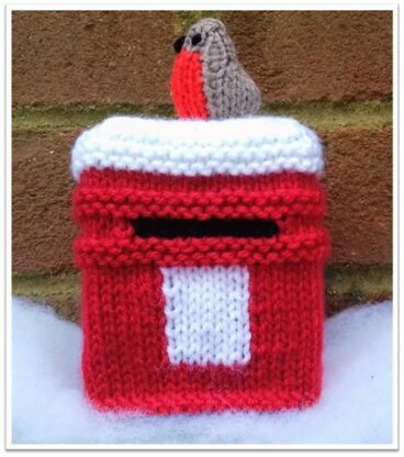 Post Box Christmas Chocolate Orange Cover measures 10.5cm approx. (excluding knitted Robin) and holds a boxed Chocolate Orange.