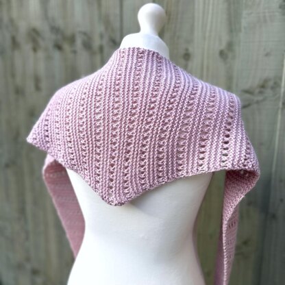 Winter Sunrise is a simple shallow reversible shawlette worked sideways in garter stitch with rows of eyelets.