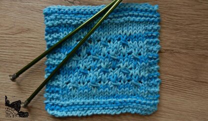 Designer: Julia Schwartz Yarn: Bernant Handicrafter, 100% cotton 1 skein Needles: 6mm needles Notions: tapestry needle Size: 6 x6 inches Gauge: 15 sts 13 rows equals 4 inches
