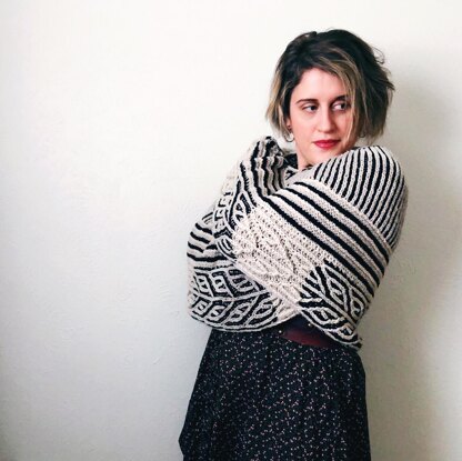 Feeling all the Winter Vibes :: a thick, squishy hug of a shawl with extreme crescent shaping and a graphic arrow applied border, knit using a combination of two-color brioche color blocks, and garter stitch stripes, all finished with an i-cord edge.