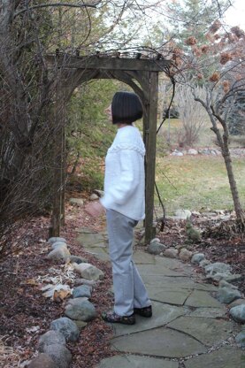 A top down pullover sweater that begins with a long cable. After joining in the round, stitches are picked up and worked to the mock turtleneck. Then stitches are picked up and worked to the subtle hi-low hem. Sleeves are full for comfort. No seaming.