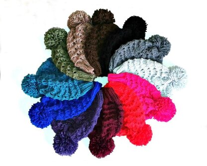 Ultra comfy and super snug, relaxed winter fashion.  Knit in the round from the bottom up, this easy to wear winter hat has a simple lace stitch pattern ideal for lace newbies or for more experienced knitters who want a quick and simple, no fuss project. You’ll need to know how to knit in the round using a circular needle and double pointed needles.  Made using 100% acrylic Hayfield Bonus chunky  Winter Waves - PDF PATTERN - © Wild Honey Design not for commercial use.