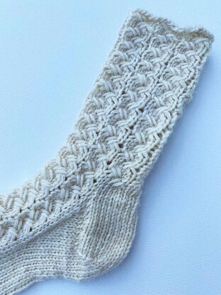 WinterSock29 are socks worked in the same pattern as VesterbyCrea No 29 sweater. The socks are worked from the shaft to the toe. The socks are worked in pattern on the shaft and the upper foot and stockinette in the foot sole.