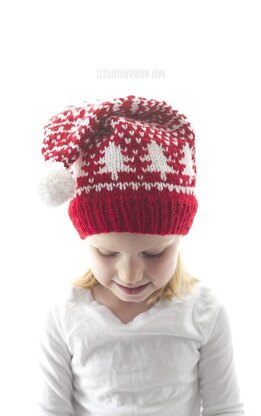 This pretty wintry fair isle stocking cap knitting pattern has a fun fair isle pattern of trees and fair isle motifs in red and white worsted, it's a fun knit to make for your little one! This adorable wintry baby hat knitting pattern includes instructions for four sizes. It is knit in the round and does require basic knowledge of stranded / fair isle knitting techniques.