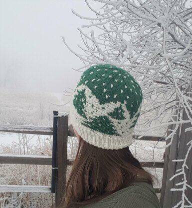 The pattern of the hat, while repeating itself 3 times, still looks different from every angle, giving an impression that , just like in nature, no two trees are exactly alike. Colorwork here is simple enough to have a beginner knitter moving along with confidence. It is also captivating for the mind of an advanced knitter, who would be going for "just one more row" to see the picture appear in their hands.