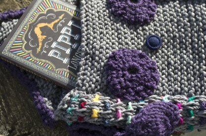 Needle: 6.5 mm Hook: 5.5 mm Yarn: 300 m worsted weight in main colour and small amounts in accent colours. Other: Button, sewing needle.
