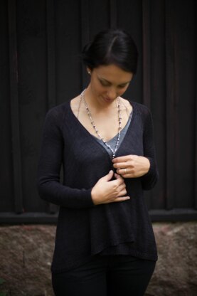 This little cardigan is knitted from the top down and seamlessly. What starts looking like another regular raglan-sleeve sweater, turns into a surprising construction. Different lines of increases are worked in the body of the sweater, creating a flow and drape that are unique to this type of construction and flattering to all body types. It can be dressed up or down. Worked in a more sturdy yarn it is a classic every-day piece. Perfect for throwing on plain tops and jeans. But if you use a more luxurious yarn, like the one pictured in the pattern, it becomes the perfect companion for a fancy night out.