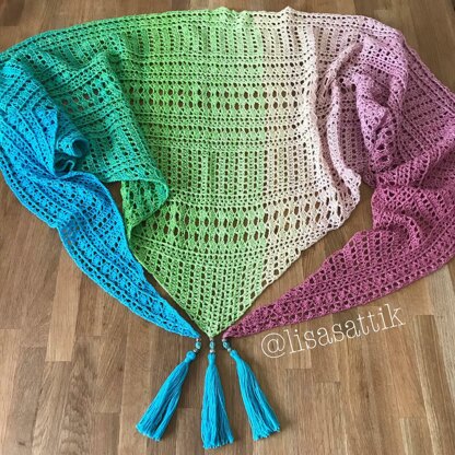 Wisteria Way is worked with vertical textured columns of pattern, in a side-to-side triangle shaped design.