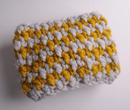 Made in our new yarn, Podgy, this is simple and very quick to make. Podgy is a 'super' super chunky and knits/crochets on a 15/20mm needle, if you want to make this in another yarn you may need to make the base chain longer, this is easy to do just make sure the chain is a multiple of two, can comfortably fit over your head and you use a hook that is consistent with the yarn.