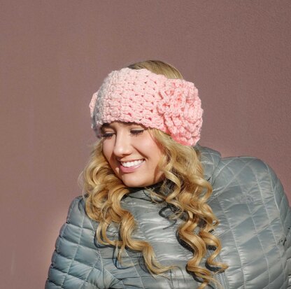 Fancy woman, girls earwarmer FLOWER pattern. Crochet headband pattern. One day project.