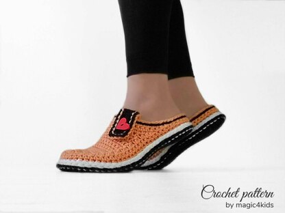 This pattern is written in English, American terminology with STEP-BY-STEP INSTRUCTIONS WITH MANY PHOTOS, VERY DETAILED PHOTO-TUTORIAL AND MATERIALS LIST for making these wonderful clogs that you'll love. SIZES: 36 to 43 EU / 5,5 to 10,5 US SKILL LEVEL: INTERMEDIATE. Basic skills of crocheting are needed. MATERIALS: • Any kind of MEDIUM yarn – thickness 4 /Worsted, Afghan, Aran in 1/2/3 colors • Hook – size 5(EU) or H8 (US) • 2 buttons (optional) & Scissors