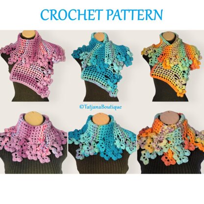 The width of the scarf is 12" (30 cm), the length 40" (100cm) but easily can be made longer.
