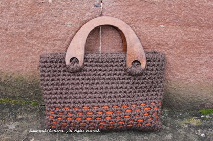 It is a crochet purse perfect for anyone looking to stand out!. Crocheted out of super bulky weight yarn in taupe with decorative stitch in contrasting burnt orange shade for added appeal. Simply adorable!