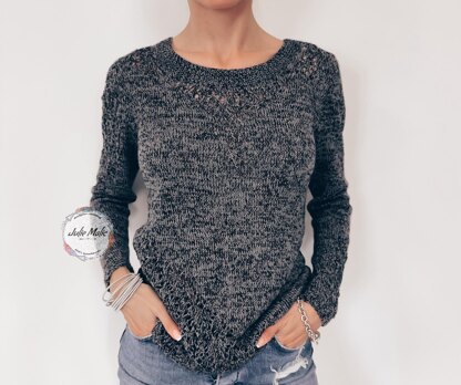 Lightweight semi sheer sweater pattern includes 5 sizes: XS, S, M, L, XL for bust 79 – 102 cm / 31.1” – 40.2”, girl on picture: bust 82 cm/32,3’’, waist 60 cm/23,6’’, hips 88 cm/34.6”, height 161 cm/63,4”, sweater size XS.