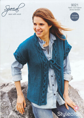 Womens's Tie Fronted Waistcoat in Stylecraft Aran and Stylecraft Aran with Wool - 9021 is a Knitting pattern by Stylecraft, available as a Leaflet and includes instructions in English. Super fun to make, this pattern could be your next masterpiece!