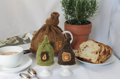Finished size Tea cosy measures approximately 20 cm in diameter and 23 cm tall with the knot on top. Egg cosy measures approximately 8cm in diameter and 10 cm tall with the knot on top.