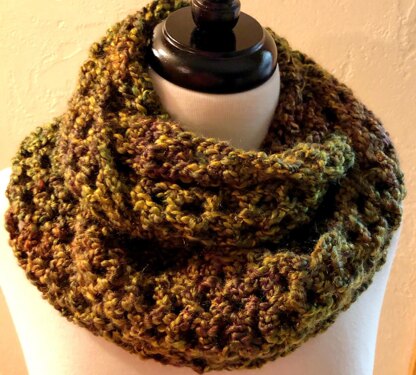 This woodland cozy cowl crochet pattern is a great beginner pattern. You can create one yourself in an afternoon. This Lion Brand yarn feels so soft against my neck. An infinity cowl is easy to pull over my head add a brooch and go. If you can double crochet and chain stitch, you have the skills needed for this crochet pattern.