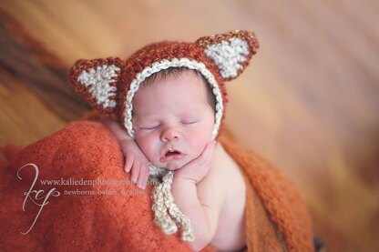 This is a PDF crochet pattern for a chunky baby bonnet in 5 sizes with different options for two different animals (bear and fox).