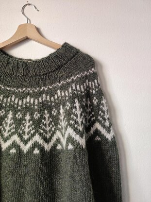 The Woodland Hills Sweater is worked from the top down and starts with a double border rib collar, after which short rows are used to shape the neck. It continues with the colorwork section across the yoke, and when the yoke is complete the sleeves and body are finished separately. The sweater also has a colorwork motif at the end of the sleeves and the body. Inside the pattern there are two variations of the main motif, so this allows you to choose the one you prefer.