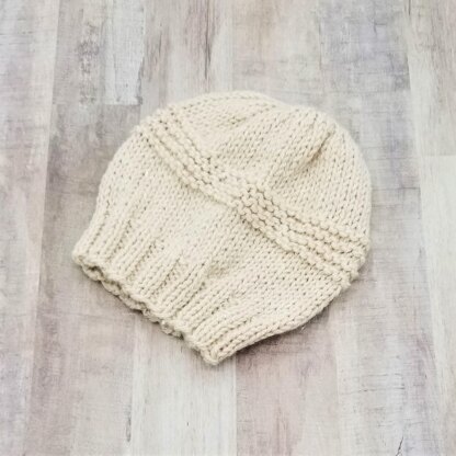 The Woodmont Child Hat Knitting Pattern is a basic knitted beanie pattern, using knit & purl stitches and knitted flat, then seamed. Woodmont knitting pattern has a 1 1/2” ribbing for a great fit, then the rest of the hat is knit in stockinette stitch with a stripe of garter stitch creating texture and visual interest. The crown features simple decreasing for great shape and fit. Decreasing is simple (knit 2 together) style. Woodmont is a great knit for beginners, makers, charity knitters and for quick last minute gifts.