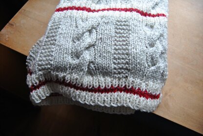 It is a simple afghan to knit, with a nice cable, and easy color change for the stripe.