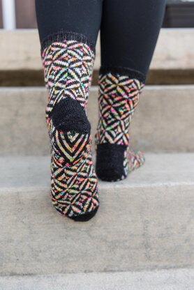 The Narnian sailors arrive at the end of the world to find a Silver Sea filled with lilies and sunlight refracted into rainbows by a giant wave. These top-down socks use stranded colorwork to create their own fractal design. Pair your favorite Countess Ablaze variegated with a semi-solid for stunning results. The design is anchored by a solid cuff, heel, and toe, while clever details such as an eye-of-the-partridge heel and a unique gusset make these socks as fun to knit as they are to wear. This flashy footwear is ready to travel to the end of the world… and beyond!