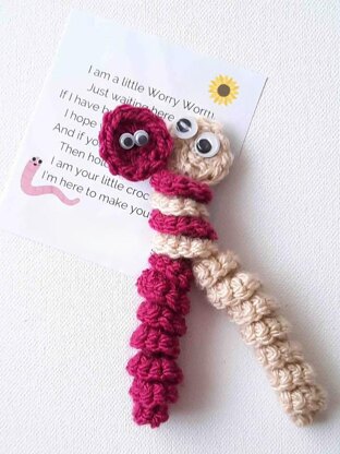 Crochet Worry Worm Pattern + Printable Poem Tags (editable with Canva)