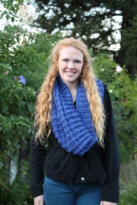 This cowl uses 2 hanks of Malabrigo Merino Worsted, or 410 yards of other worsted weight yarn. It has wonderful texture that looks great unblocked. I lightly steamed the twisted rib edges to relax them a little, but let the center portion untouched.