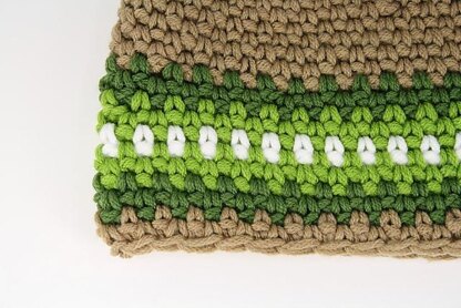 Pattern Details Yarn Weight: Worsted Hook Size: H Skills needed: sc, hdc, sl st, ch, and incorporating a 2nd color Pattern is worked in the round